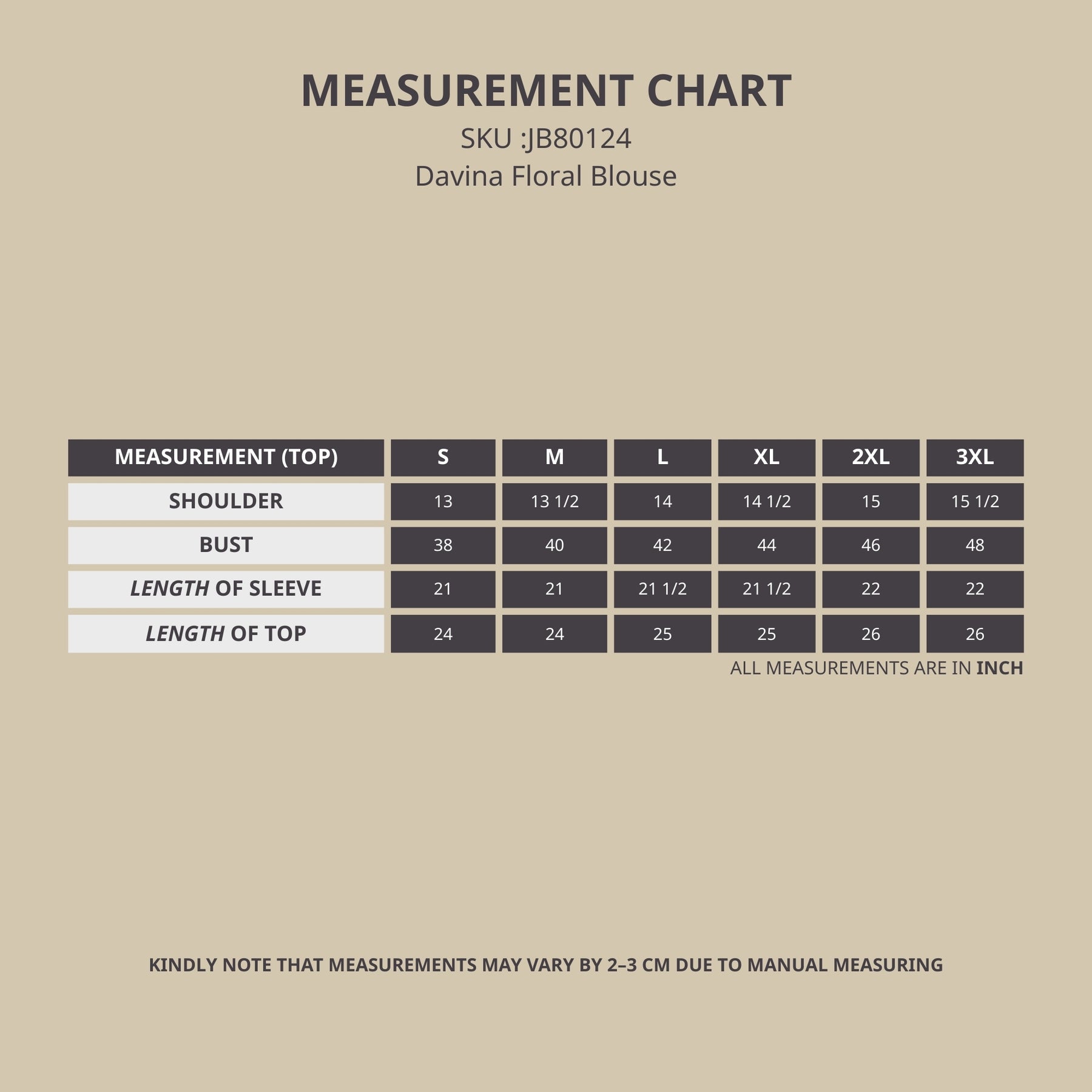 Comes in 6 sizes : S, M, L, XL, 2XL, 3XL