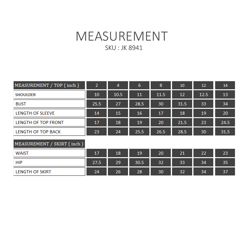 • Comes in 7 sizes : 2,4,6,8,10,12,14