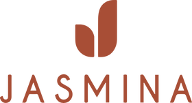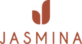 This is a premium JASMINA packaging box in a warm burnt-orange tone with floral detailing all around. It features the JASMINA logo in the center and comes with a magnetic opening for a sleek, easy-to-use design. The box includes brown ribbon handles for carrying and custom tissue paper inside for a neat, elegant touch perfect for gifting or premium purchases.